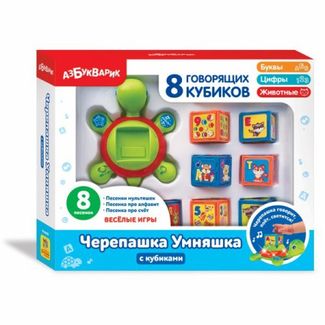 Черепашка при помощи 8 обучающих кубиков познакомит малышей с буквами, цифрами и животными! Нужно просто поставить кубик на черепашку и нажать!
