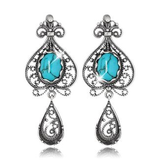 Камень: бирюза. В изделии применяются синтетические камни, имитирующие натуральные. Тип замка: английский. Размер серег: 4,5 x 2 см. None Возможен самовывоз. Есть доставка.