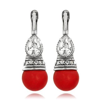 Камень: коралл. Тип замка: английский. Размер серег: 3 x 1 см. Вставки: Swarovski. None Возможен самовывоз. Есть доставка.