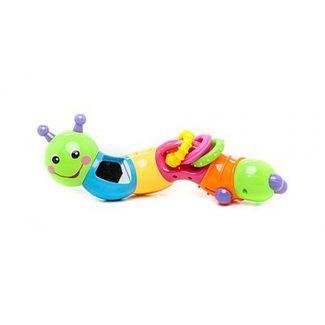 Универсальная погремушка для самых маленьких "Веселая Гусеница" имеет 6 подвижных секций, способных вращаться независимо друг от друга, а также переключатель "щелкалку" и три эластичных эспандера для развития силы, координации и мелкой моторики малыша. Во время вращения секций, игрушка издает приятные щелчки, при встряхивании - весело гремит маленькими шариками. На гусенице есть зеркальце, чтоб малыш мог узнавать себя и окружающий мир.