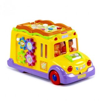 "Забавный автобус" — многофункциональная развивающая музыкальная игрушка со звуковыми и световыми эффектами. Игрушка развивает внимание, память, наглядно-образное мышление, речь, сенсорику, моторику и двигательные навыки. Веселый автобус поможет ребенку в процессе игры изучить геометрические фигуры и цвета, фигуры животных и их голоса; познакомит с эмоциями, разовьет музыкальный слух.