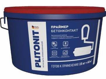 Праймер Plitonit Грунт Бетон контакт предназначен для предварительной обработки оснований с низким водопоглощением (монолитный бетон, плиты перекрытий, бетонные блоки, цементные штукатурки и т.п.) перед проведением штукатурных, облицовочных работ и работ по устройству полов.