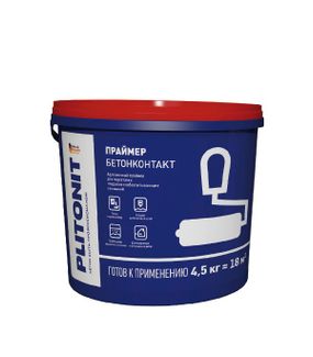 Праймер Plitonit Грунт Бетонконтакт предназначен для предварительной обработки оснований с низким водопоглощением (монолитный бетон, плиты перекрытий, бетонные блоки, цементные штукатурки и т.п.) перед проведением штукатурных, облицовочных работ и работ по устройству полов.