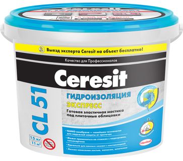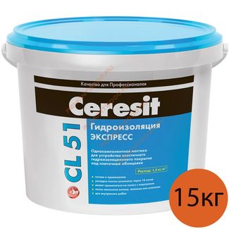 - ЦЕРЕЗИТ CL-51 мастика гидроизоляционная (15кг) CERESIT CL51 Экспресс эластичная гидроизоляция (15кг) по выгодной цене 4 399 р. руб.;