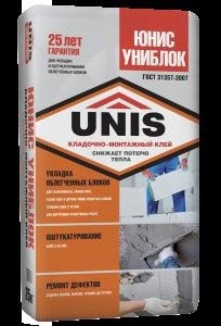 - Клей для блоков ЮНИС Униблок 25кг по выгодной цене 335 р. руб.;