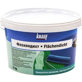- КНАУФ Флэхендихт мастика акриловая гидроизоляционная (5кг) KNAUF Flachendicht эмульсия гидроизоляционная (5кг) по выгодной цене 1 449 р. руб.;