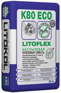- ЛИТОКОЛ К80 Литофлекс Эко клей для керамогранита (25кг) LITOKOL K80 Litoflex Eco клей для керамического гранита (25кг) по выгодной цене 677 р. руб.;