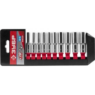 - Набор ЗУБР МАСТЕР: Торцовые головки (1 4) удлиненные на пластиковом рельсе, Cr-V, 4-13мм, 10 предметов (арт. 27657-H10) по выгодной цене 650 р. руб.;