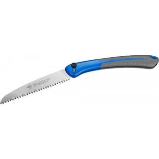 - Ножовка складная (пила) ПОХОДНАЯ 9 180 мм, 9TPI, японский зуб с трехгр. заточкой, рез на себя, компактная,точный рез сырой древесины, ЗУБР (арт. 15168 по выгодной цене 750 р. руб.;