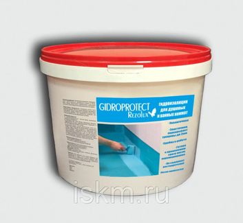 Предлагаем купить окрасочную гидроизоляцию Доставка в любой город России Готовый к применению окрасочный материал для гидроизоляции стен и полов во влажных и мокрых помещениях, а также в условиях улицы, перед облицовкой кафелем, керамогранитом и другими керамическими отделочными материалами. После нанесения 2х слоев делает душевые и ванные полностью водонепроницаемыми перед укладкой плитки. Может применяться для гидроизоляции бассейнов в комплексе с другими гидроизоляционными материалами. Свойства экологичная; эластичная, перекрывает трещины до 1мм; удобна в работе; готова к применению сразу после перемешивания; не содержит растворителей; легко наносится. Технические характеристики Расход на один слой на 1 м2 Для гладких оснований г/м2 350-500 Для грубых, пористых оснований г/м2 450-700 Время сушки (при +20°С и 60% влажности воздуха): между нанесением слоев не менее 2 ч; перед укладкой плитки не менее 12 ч. Цвет темно-зеленый Инструмент: валик, кисть ТУ 2316-001-30584984-11 Инструкция по применению окрасочной гидроизоляции Rezolux Gidroprotect Условия для работы Температура основания и помещения +5°С …+25°С,влажность окружающего воздуха не более 80% . Перед нанесением гидроизоляции необходимо исключить капиллярное проникновение влаги в основание, цементные стяжки должны содержать не более 2% остаточной влаги, гипсовые стяжки — не более 0,5%, штукатурки — не более 1%, а обогреваемые основания — не более 0,3%. Подготовка основания О