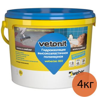 - ВЕТОНИТ Вебер.Тек 822 мастика акриловая гидроизоляционная (4кг) серая VETONIT Weber.Tec 822 гидроизоляция полимерная высокоэластичная (4кг) серая по выгодной цене 1 199 р. руб.;