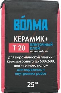 - ВОЛМА Керамик+ клей плиточный термостойкий (25кг) ВОЛМА Т20 Керамик плюс плиточный клей для плитки и керамогранита (25кг) по выгодной цене 283 р. руб.;