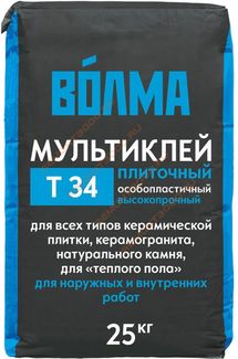 - ВОЛМА Мультиклей клей плиточный высокопрочный (25кг) ВОЛМА Т34 Мультиклей клей для плитки и камня особопластичный (25кг) по выгодной цене 309 р. руб.;