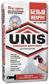 - ЮНИС Белый жемчуг шпатлевка полимерная финишная (18кг) UNIS Белый жемчуг шпаклевка финишная полимерная (18кг) по выгодной цене 399 р. руб.;