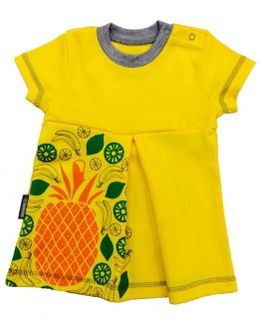 Платье Bambinizon Солнечный тропик желтое - платье с короткими рукавами и застежкой на кнопках у горловины, благодаря которой оно легко надевается и снимается. Модель привлекательна не только комфортным кроем, но и яркой насыщенной расцветкой с большим изображением, создающими веселое летнее настроение. Материал платья мягкий и шелковистый, не растягивается и не линяет. Возраст ребенка: от 2 месяцев до 2 лет.. Минимальная сумма заказа 1500 руб. Возможен самовывоз. Есть доставка.