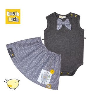 Детское боди со съемной юбкой "Basik Baby" из коллекции "Little Lady" - идеально подходит для девочек в возрасте от 0 до 3 лет.Юбка съёмная, пристегивается на две пуговицы по боковым швам. Перед украшен бантом, юбка декорирована нашивками с детским принтом. Для удобства одевания плечевой шов застёгивается на две кнопки. Низ боди выполнен в виде трусиков и также застёгивается на две кнопки.Цвет детского боди: антрацит.Цвет юбочки: серый в горошек. None