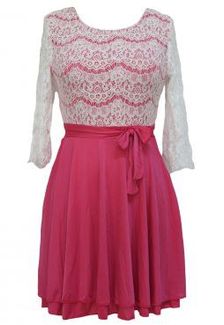 Очаровательное платье! Верх украшен узорчатым плетением. Дизайн приталенного кроя с расклешенным подолом и рукавом 3/4. Кокетливая модель! В наличии L 2 шт None Есть доставка.