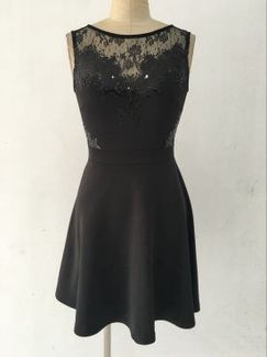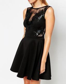 Черное маленькое платье - необходимый атрибут в гардеробе каждой леди! Изделие приталенного кроя с юбкой-клеш. Декорировано кружевом и пайетками. На спинке молния. Такая модель отлично подойдет для вечернего образа. В наличии M 1 шт, L 1 шт None Есть доставка.