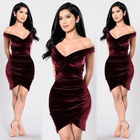 Изящное бархатное платье сделает Ваш образ изысканным и неотразимым. Изделие приталенного силуэта с открытым декольте. На груди отделка перекрестного дизайна. Юбка с эффектом запаха. В наличии S 1 шт None Есть доставка.