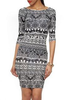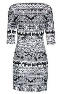 Замечательное платье с оригинальным узором. Модель с рукавом 3/4. Удлиненная модель обтягивающего кроя. В наличии M 1 шт None Есть доставка.