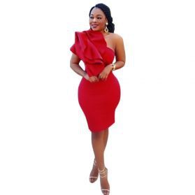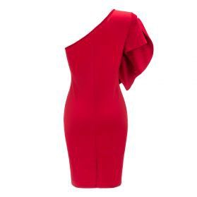 Стильное красное платье! Изделие приталенного кроя. Короткий рукав. Модель украшена массивным воланом. Идеально подойдет для торжественных мероприятий. В наличии 2XL 1 шт None Есть доставка.