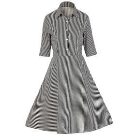 Прекрасное "полосатое" платье идеально подойдет для гардероба любой леди! Модель А-силуэта, с рукавом 3/4, на пуговицах. Будьте неотразимы! В наличии S 1 шт None Есть доставка.