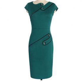 Элегантное платье приталенного силуэта отлично подойдет для повседневного гардероба любой современной леди! Изделие с коротким рукавом винтажного дизайна. Декорировано пуговками. В наличии 2XL 1 шт None Есть доставка.