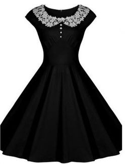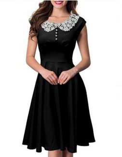 Платье в стиле ретро создаст романтичный образ! Изделие приталенного кроя с юбкой-клеш. Декорировано кружевным воротником и белыми пуговками. На спинке молния. В наличии 2XL 1 шт None Есть доставка.