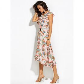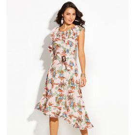 Легкое летнее платье асимметричного дизайна! Яркий орнамент и рюши придадут эффектности летнему образу! Изделие с вшитым ремнем. Сбоку потайная молния. В наличии M 1 шт None Есть доставка.