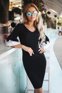 Стильное платье-футляр с рукавом 3/4. V-вырез, на спинке молния. Рукава украшены крупным цветочным кружевом. Будьте неотразимы! В наличии M 1 шт None Есть доставка.