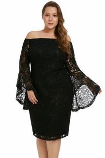 Нежное платье из чёрного кружева оригинального кроя с расклешенными рукавами. Будьте неотразимы! В наличии 5XL 1 шт None Есть доставка.
