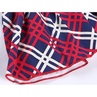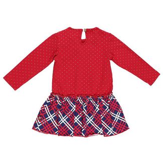 Модное трикотажное платье для девочек. Украшено стильным принтом. Горловину дополняет декоративный бантик из принтованного в клетку трикотажа. None Можно купить без предварительного заказа.