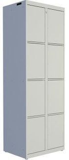 предназначены для временного хранения личных вещей посетителей/сотрудников Варианты комплектации: перфорация на ячейке / без перфорации; оснащены электромеханическим замком-защелкой PS-901; толщина лицевой панели ячейки – 1,2 мм; толщина корпуса ячеек – 1,2 мм; терминал с Пин-клавиатурой и индикатором; питание от сети 220 В; встроенный аккумулятор на 8 часов работы; электромеханический замок-защелка PS-901$ количество ячеек: 8 тип покрытия: порошковое