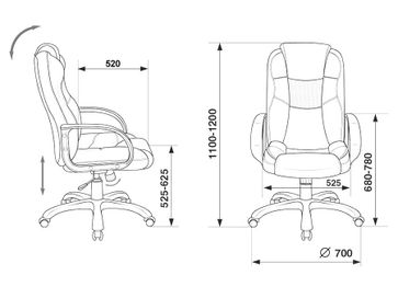 Характеристики: <br> Материал обивки: искусственная кожа.<br> Материал крестовины и подлокотников: пластик.<br> Диаметр крестовины: 700 мм.<br> Регулировка высоты: газлифт.<br> Максимальная нагрузка: 120 кг.<br> Размер сиденья (ШхГ): 525 х 520 мм.<br> Высота от пола до сиденья: 525-625 мм.<br> None Страна производства: Россия