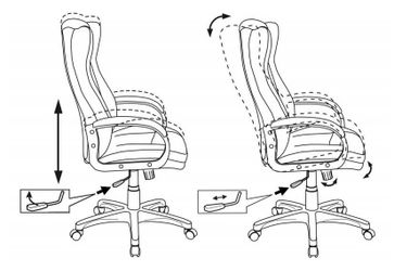 Офисное кресло оснащено механизмом качания с регулировкой под вес руководителя и фиксацией в нескольких положениях. </br>Модель настраивается по высоте, благодаря механизму газлифт. </br>Высота от пола до сидения — 515/615 мм.<br>