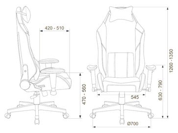 Характеристики: <br> Диаметр крестовины: 700 мм.<br> Материал крестовины и подлокотников: пластик.<br> Регулировка подлокотников: 2D.<br> Материал обивки: искусственная кожа.<br> Материал колес: полиуретан.<br> Диаметр колес: 50 мм.<br> Механизм регулировки высоты: газлифт.<br> Механизм качания: с фиксацией в вертикальном положении.<br> Регулируемый угол наклона спинки: 90-150°.<br> Регулируемая высота сиденья: 470-560 мм.<br> Габариты сиденья (ШхГ): 545 х 510 мм.<br> Максимальная нагрузка: 150 кг.<br> None Страна производства: Россия