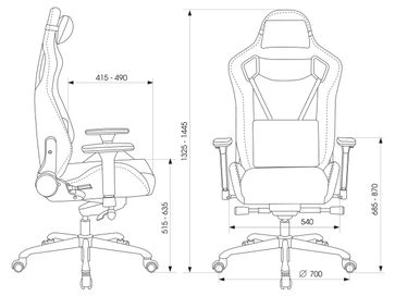 Характеристики: <br> Материал крестовины: металл.<br> Диаметр крестовины: 700 мм.<br> Материал подлокотников и колес: пластик.<br> Регулировка подлокотников: 4D.<br> Диаметр колес: 60 мм.<br> Механизм регулировки высоты: газлифт.<br> Механизм качания: с фиксацией в нескольких положениях.<br> Регулируемый угол наклона спинки: 90-150°.<br> Регулируемая высота сиденья: 515-635 мм.<br> Габариты сиденья (ШхГ): 540 х 415 мм.<br> Максимальная нагрузка: 150 кг.<br> None Страна производства: Россия