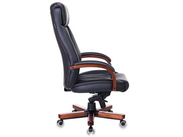 Шикарное кресло руководителя Канцлер 2 добавит солидности и важности вашему кабинету. В дизайне кресла используется темное дерево, которое безусловно подчеркнет стиль и достаток своего владельца. Мягкое, глубокое кресло снимет усталость и подарит непередаваемые ощущения комфорта.<br> Характеристики: <br> Материал обивки: натуральная кожа (лицевые элементы и искусственная кожа (торцевые и задние части).<br> Материал крестовины и подлокотников: дерево.<br> Механизм со смещенной осью качания с возможностью фиксации в нескольких положениях.<br> Механизм регулировки высоты: газлифт.<br> Колесики подходят для паркета и ламината.<br> Регулируемая высота: 520-580 мм.<br> Размер сиденья (ШхГ): 600 х 505 мм.<br> Максимальная нагрузка: 200 кг.<br> None Страна производства: Россия