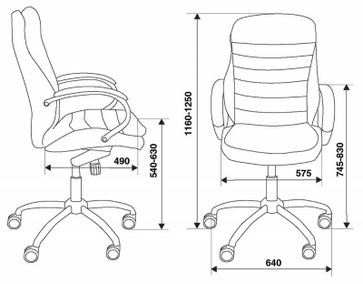 Характеристики: <br> Материал крестовины: металл.<br> Диаметр крестовины: 700 мм.<br> Материал подлокотников: металл с мягкими накладками.<br> Материал обивки: натуральная и искусственная кожа.<br> Материал колес: полиуретан.<br> Диаметр колес: 50 мм.<br> Механизм регулировки высоты: газлифт.<br> Механизм качания: с фиксацией в нескольких положениях.<br> Регулируемая высота сиденья: 540-630 мм.<br> Габариты сиденья (ШхГ): 575 х 490 мм.<br> Максимальная нагрузка: 181 кг.<br> None Страна производства: Россия