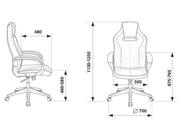 Характеристики: <br> Материал обивки: искусственная кожа и ткань.<br> Материал крестовины и колес: пластик.<br> Материал подлокотников: пластик с накладками из искусственной кожи и ткани.<br> Механизм качания: с регулировкой кресла под вес сидящего и фиксацией спинки в вертикальном положении.<br> Механизм регулировки высоты: газ-лифт.<br> Диапазон высоты кресла: 1130-1250 мм.<br> Диапазон высоты сиденья от пола: 460-580 мм.<br> Диапазон высоты подлокотников от пола: 675-795 мм.<br> Размер сиденья (ШхГ): 505 х 480 мм.<br> Диаметр крестовины: 700 мм.<br> Максимальная нагрузка: 120 кг.<br> None Страна производства: Россия