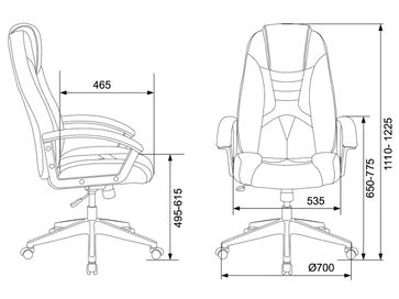 Характеристики: <br> Материал крестовины: пластик.<br> Диаметр крестовины: 700 мм.<br> Материал подлокотников: пластик с мягкими накладками.<br> Материал обивки: искусственная кожа.<br> Материал колес: пластик.<br> Диаметр колес: 50 мм.<br> Механизм регулировки высоты: газлифт.<br> Механизм качания: с фиксацией в вертикальном положении.<br> Регулируемая высота сиденья: 495-615 мм.<br> Габариты сиденья (ШхГ): 535 х 465 мм.<br> Максимальная нагрузка: 181 кг.<br> None Страна производства: Россия