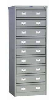 комплектуются центральным замком ПРАКТИК (2000 комбинаций), с возможностью смены цилиндра и мастер-ключом габариты ящиков рассчитаны для хранения подвесных папок формата А4 или Foolscap AFC-09 поставляются в разобранном виде опция: окраска передних панелей в другие цвета из палитры производителя, +10% к стоимости (при заказе от 50 шт.) количество полок: 9 цвет: серый полуматовый (RAL 7038) тип покрытия: порошковое