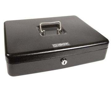 кэшбокс Ibox IB-5-CB удобно держать в ящике стола благодаря компактным размерам; внутри есть съемные отсеки для монет; под отсека для монет есть пространство для хранения купюр; удобство перемещения обеспечивается ручкой на крышке; запирается при помощи ключевого замка; кэшбокс черного цвета. None