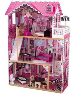 Амелия KidKraft - игрушечный особняк с 4 комнатами для кукол высотой 25-30 см. Сделан из дерева. Высота домика 121 см. Скидка 27% на этот товар Возможен самовывоз. Есть доставка.