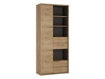 Вместительный книжный стеллаж с открытыми полками, дверцей и ящиками - благодаря этому в нем можно разместить как личные вещи, так и фотографии, статуэтки, книги, которые вы хотели бы показать гостям; Дверки и ящики открываются за ручки-выемки; За левой дверкой пять полок; В правой части четыре выдвижных ящика и открытые полки, которые сделаны в сочетании серого и цвета натурального дуба. Необходима предоплата. Возможна рассрочка. Страна производства: Польша Возможен самовывоз. Есть доставка.