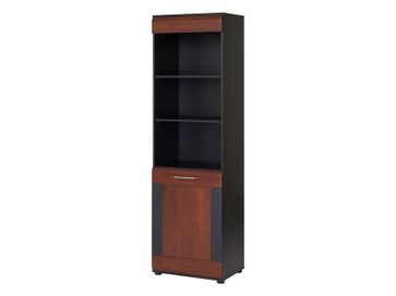 Книжный стеллаж с одной дверкой и полками;На открытых полках можно хранить книги, сувениры и др.;Изготовлена из высококачественных материалов;Оригинальные вставки из черного матового стекла;Металлические ручки и рамки;Идеально подходит для гостиной или столовой;Мебель продается в собранном состоянии и не требует дополнительной сборки. Необходима предоплата. Возможна рассрочка. Страна производства: Польша Возможен самовывоз. Есть доставка.