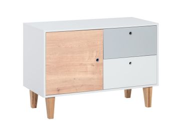 В правой части комода 2 выдвижных ящика, оборудованных системой тихого закрывания - они не помешают вам, когда будут закрываться;В левой части дверка, за которой расположена полка;Комод доступен с фасадами различной расцветки: шафран, голубой, красный, дуб. Можно подобрать соответствующий цвет под стиль вашего помещения;Кроме того, позже можно докупить нижнюю левую дверцу другого цвета и заменить её;Ножки сделаны из массива;В качестве ручек используются отверстия с силиконовым наполнением - это удобно и практично. Необходима предоплата. Возможна рассрочка. Страна производства: Польша Возможен самовывоз. Есть доставка.