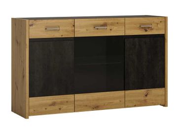 Остекленный 3-дверный комод с двумя выдвижными ящиками, которые расположена справа и слева сверху; Центральная дверка остекленная. Используется закаленное стекло темно-серого оттенка; За дверкой стеклянная полка. При включенной подсветке, которая поставляется в комплекте с комодом, расположенная на полке посуда будет выглядеть особенно привлекательно; Справа и слева за дверками по одной деревянной полке; Ящики и центральная дверка открываются за металлические ручки. Правая и левая дверка - за ручки-выемки в фасаде. Ящики и дверки имеют функции тихого закрывания - они не помешают вам, когда будут закрываться. Необходима предоплата. Возможна рассрочка. Страна производства: Польша Возможен самовывоз. Есть доставка.
