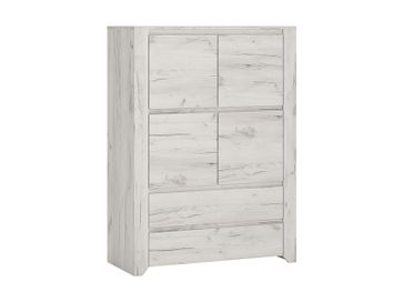 Высокий комод с четырьмя дверками; За дверками большое пространство для личных вещей; В нижней части комода два широких выдвижных ящика, которые, как и дверцы, открываются за ручку-выемку в фасаде. Необходима предоплата. Возможна рассрочка. Страна производства: Польша Возможен самовывоз. Есть доставка.