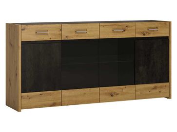 Широкий остекленный 4-дверный комод с двумя выдвижными ящиками, которые расположена справа и слева сверху; Две центральные дверки остекленные. Используется закаленное стекло темно-серого оттенка; За дверками широкая стеклянная полка. При включенной подсветке, которая поставляется в комплекте с комодом, расположенная на полке посуда будет выглядеть особенно привлекательно; Справа и слева за дверками по одной деревянной полке; Ящики и две центральные дверки открываются за металлические ручки. Правая и левая дверка - за ручки-выемки в фасаде. Ящики и дверки имеют функции тихого закрывания - они не помешают вам, когда будут закрываться. Необходима предоплата. Возможна рассрочка. Страна производства: Польша Возможен самовывоз. Есть доставка.